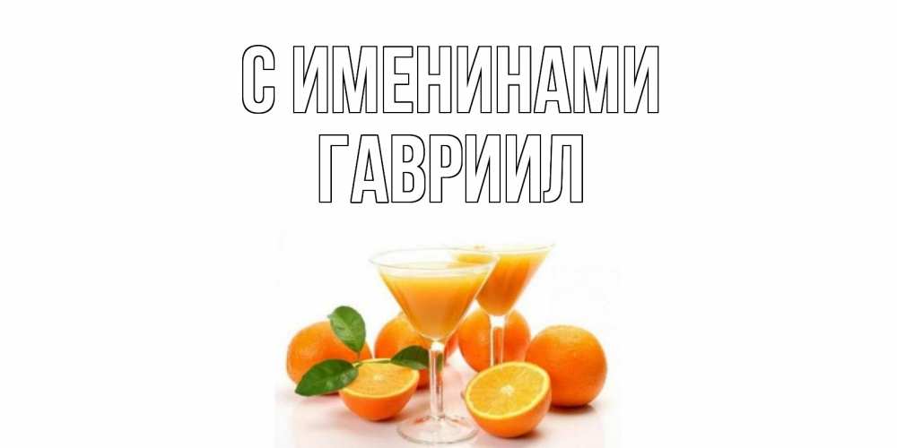 Открытка С именинами Гавриил. апельсиновый сок. апельсин