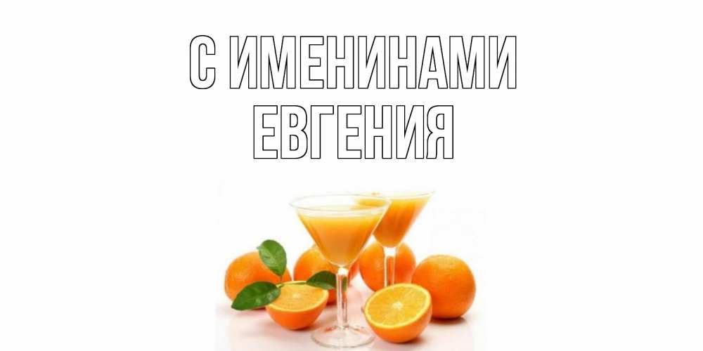 Открытка С именинами Евгения. апельсиновый сок. апельсин