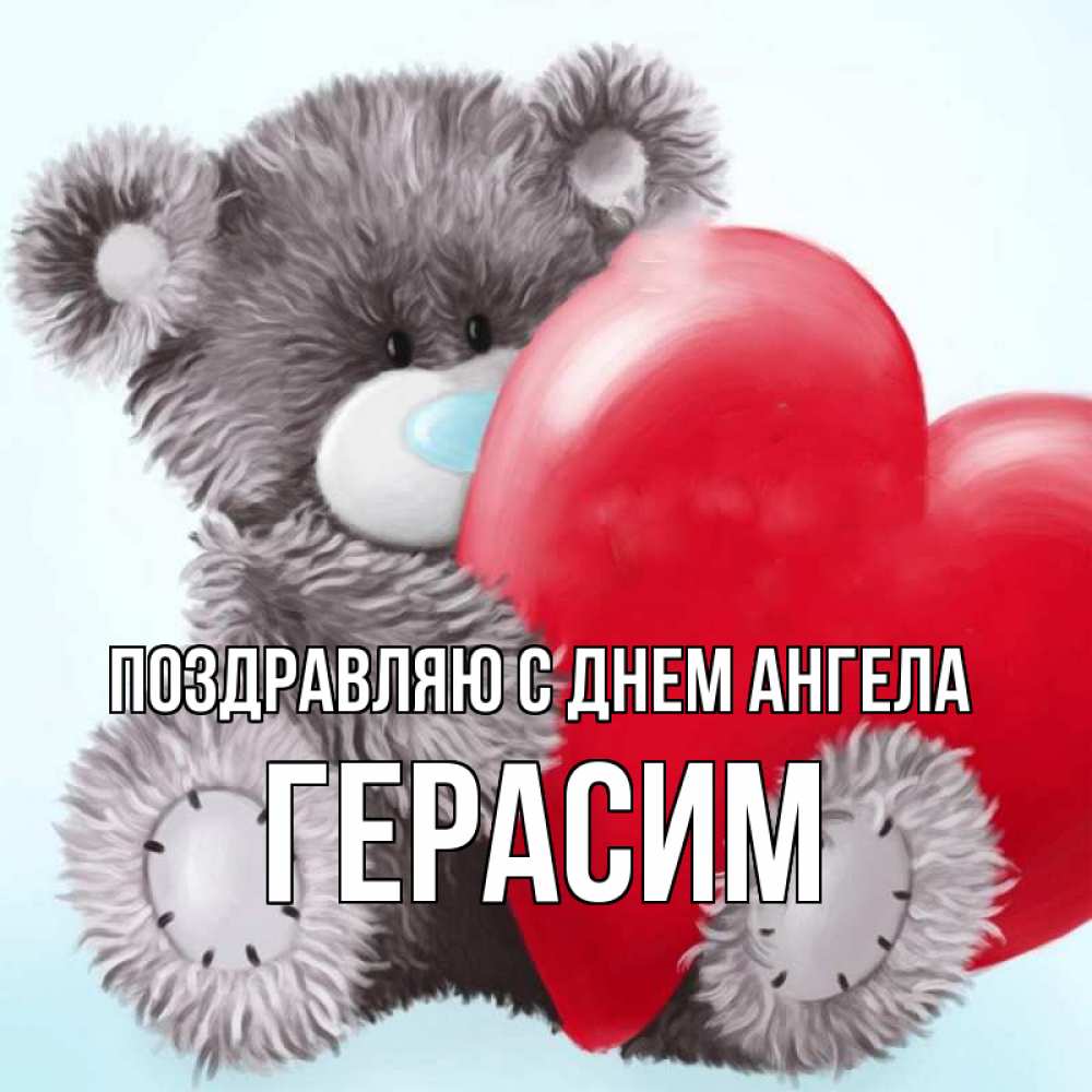 Открытка Поздравляю с днем Ангела Герасим. мишка с огромным сердцем. медвежуся