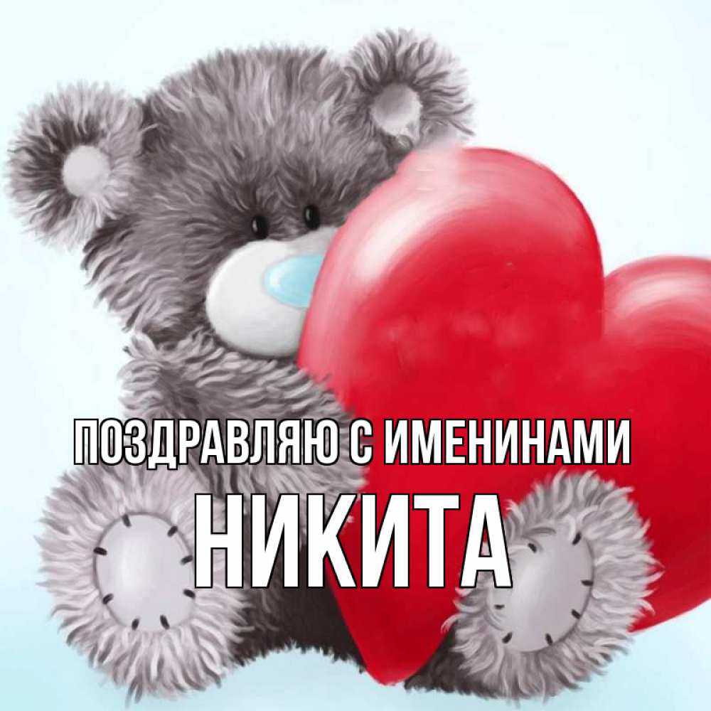 Открытка Поздравляю с именинами Никита. мишка с огромным сердцем. медвежуся