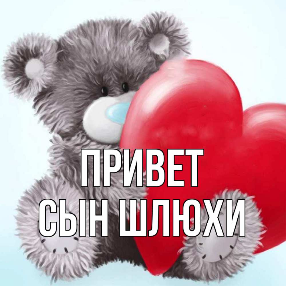 Открытка Привет Сын шлюхи. мишка с огромным сердцем. медвежуся