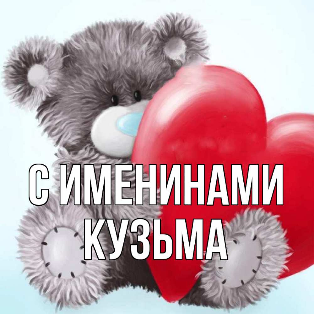 Открытка С именинами Кузьма. мишка с огромным сердцем. медвежуся