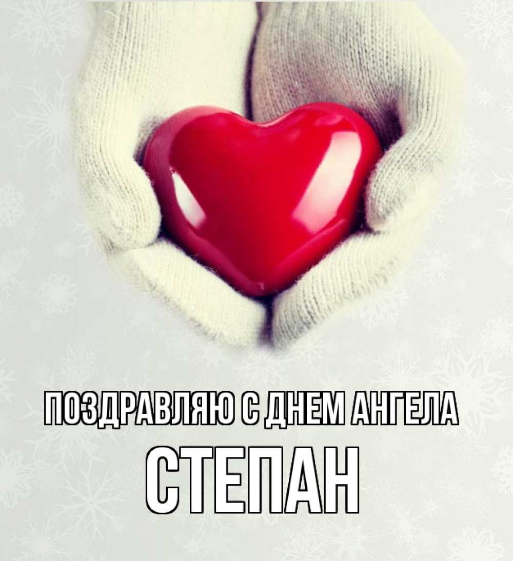 Открытка Поздравляю с днем Ангела Степан. согреваем сердце. сердечко в руках, варежки