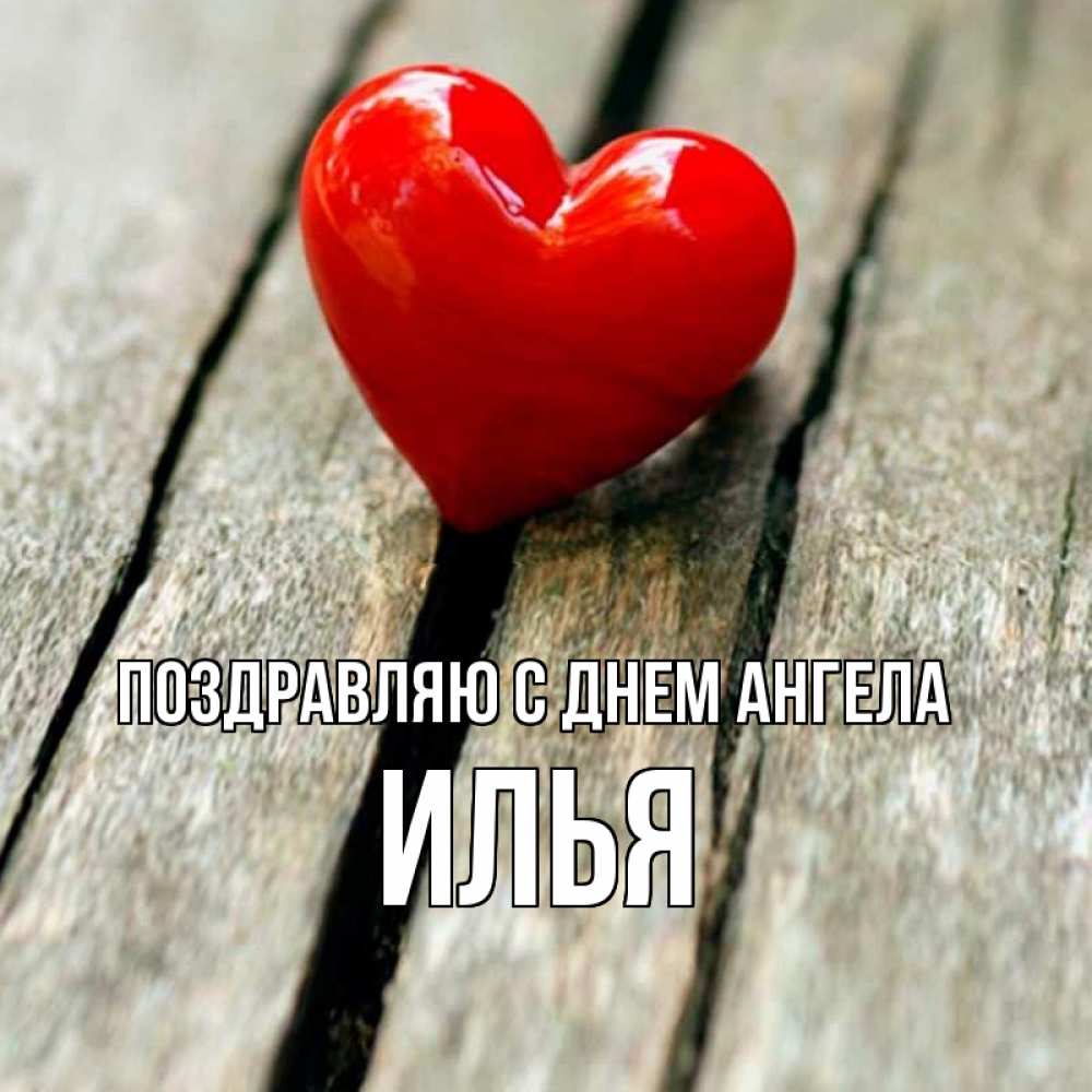 Открытка Поздравляю с днем Ангела Илья. сердце 2. красное 2