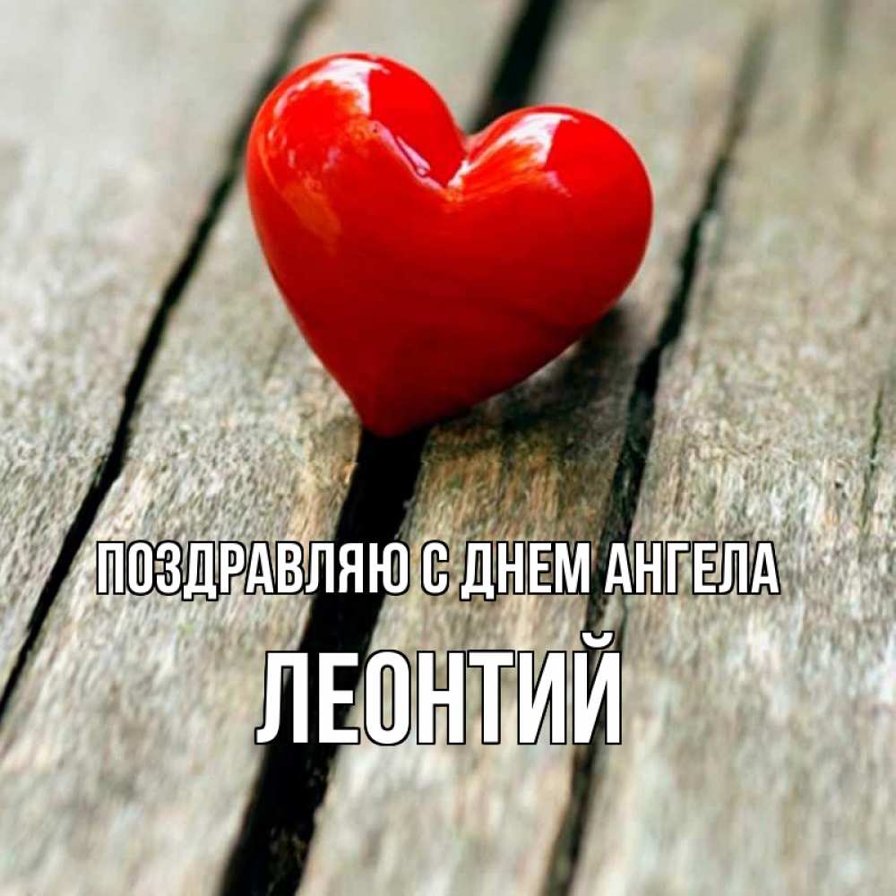 Открытка Поздравляю с днем Ангела Леонтий. сердце 2. красное 2
