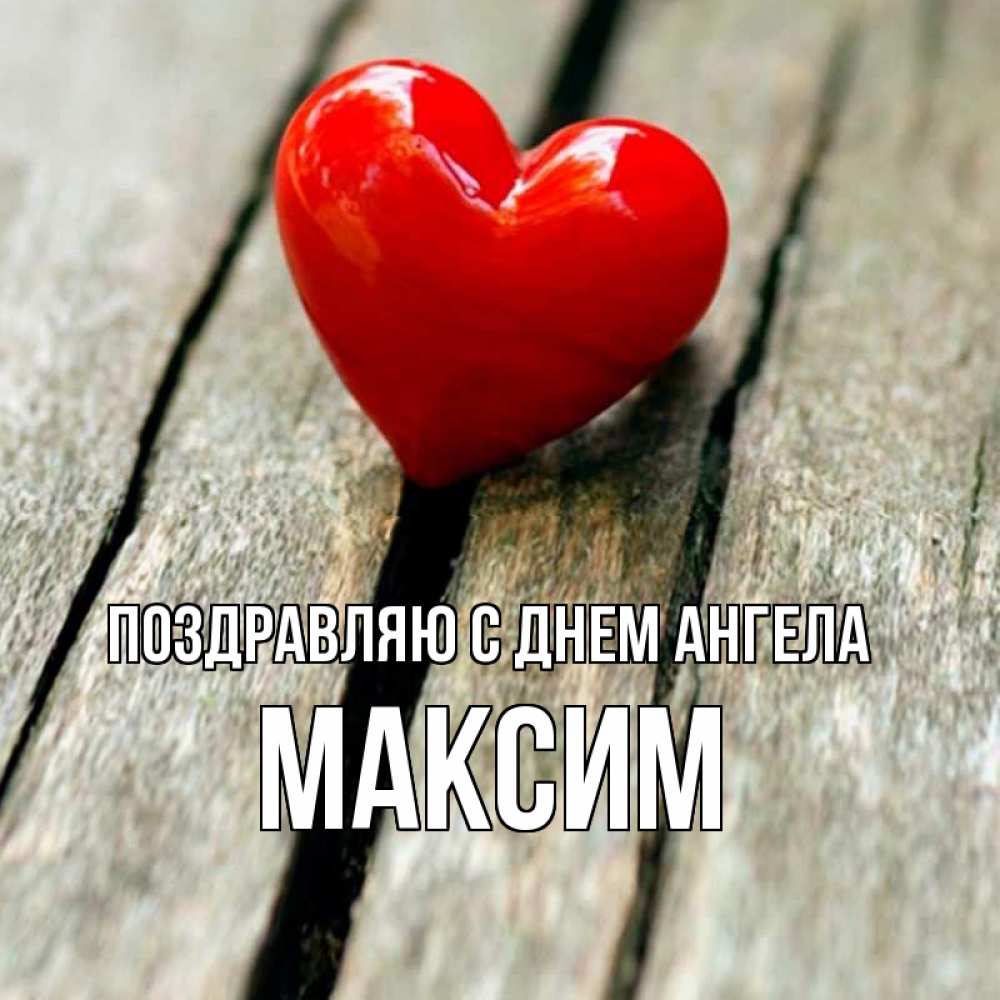 Открытка Поздравляю с днем Ангела Максим. сердце 2. красное 2