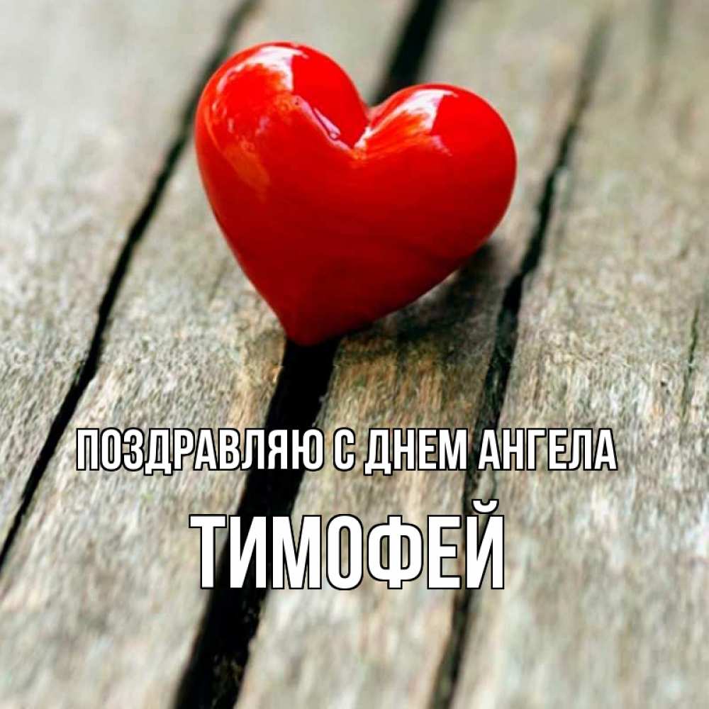 Открытка Поздравляю с днем Ангела Тимофей. сердце 2. красное 2