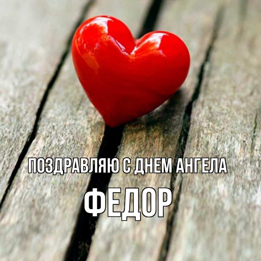 Открытка Поздравляю с днем Ангела Федор. сердце 2. красное 2