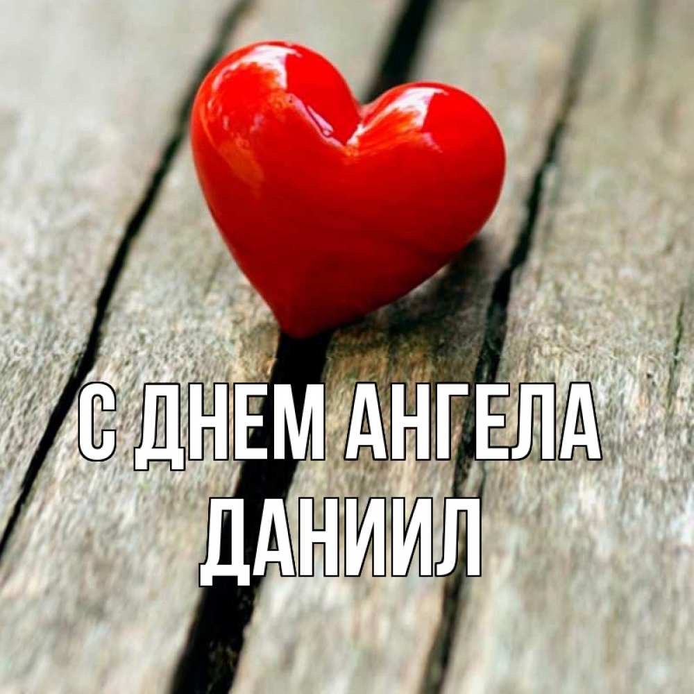 Открытка С днем Ангела Даниил. сердце 2. красное 2