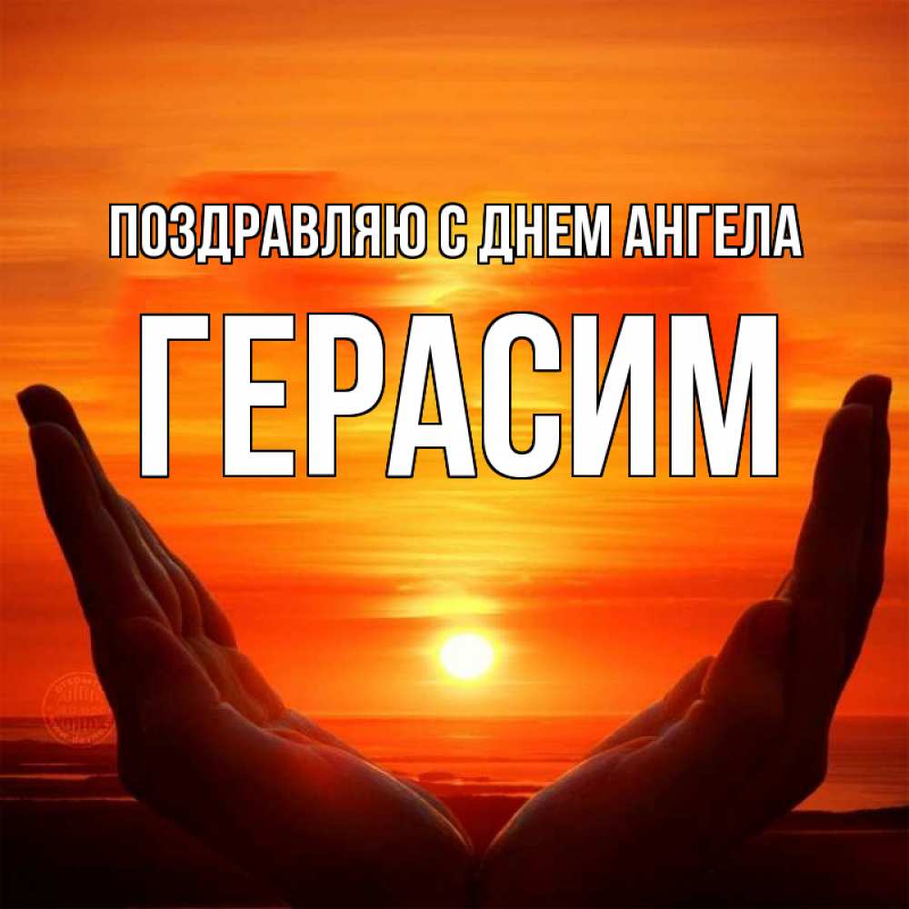 Открытка Поздравляю с днем Ангела Герасим. закат. в руках