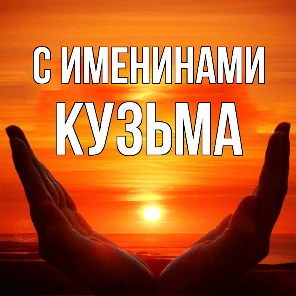 Открытка С именинами Кузьма. закат. в руках