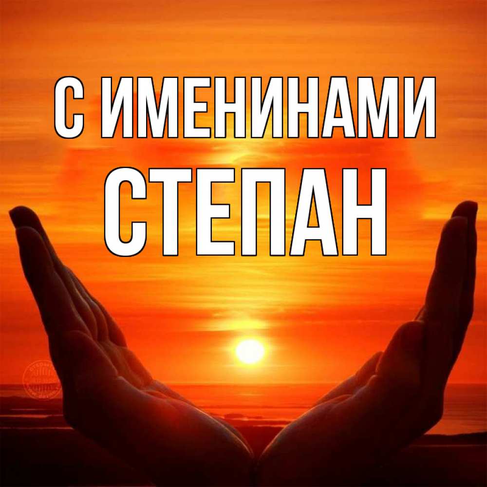 Открытка С именинами Степан. закат. в руках