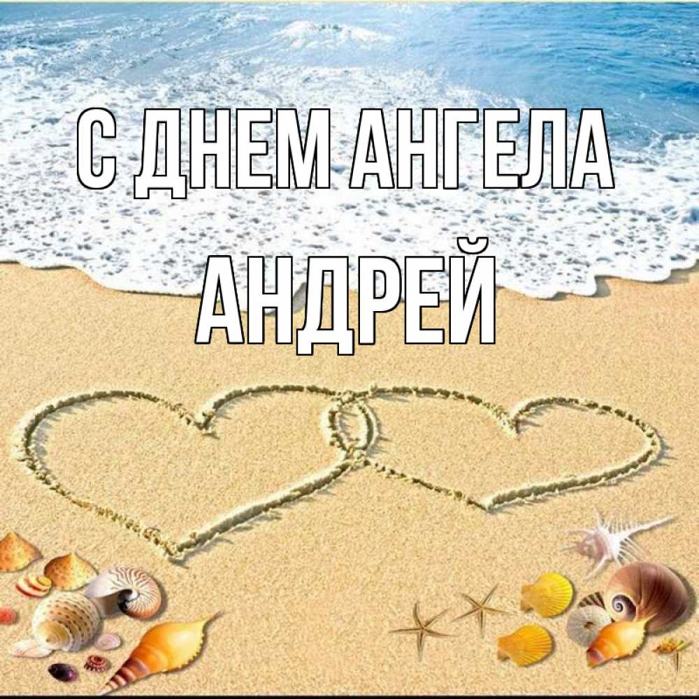 Открытка С днем Ангела Андрей. море солнце пляж. ракушки
