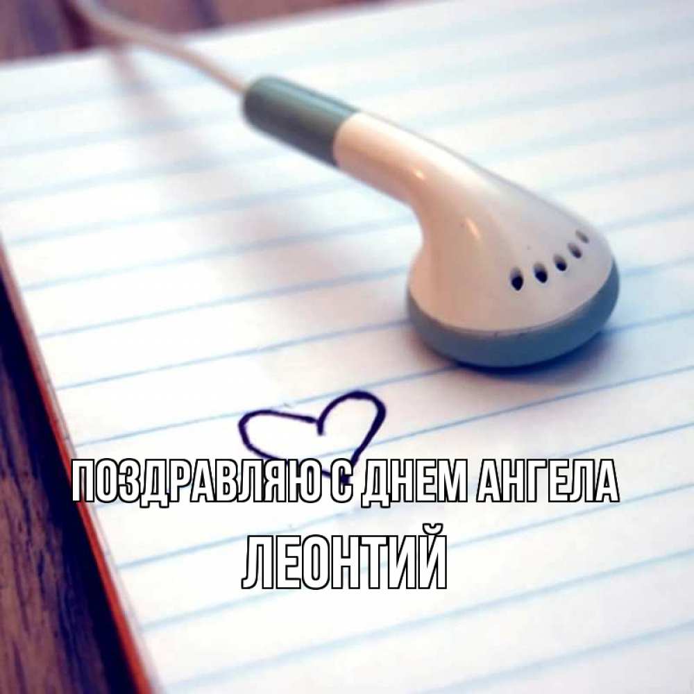 Открытка Поздравляю с днем Ангела Леонтий. наушник тетрадь в линейку. школьная тема