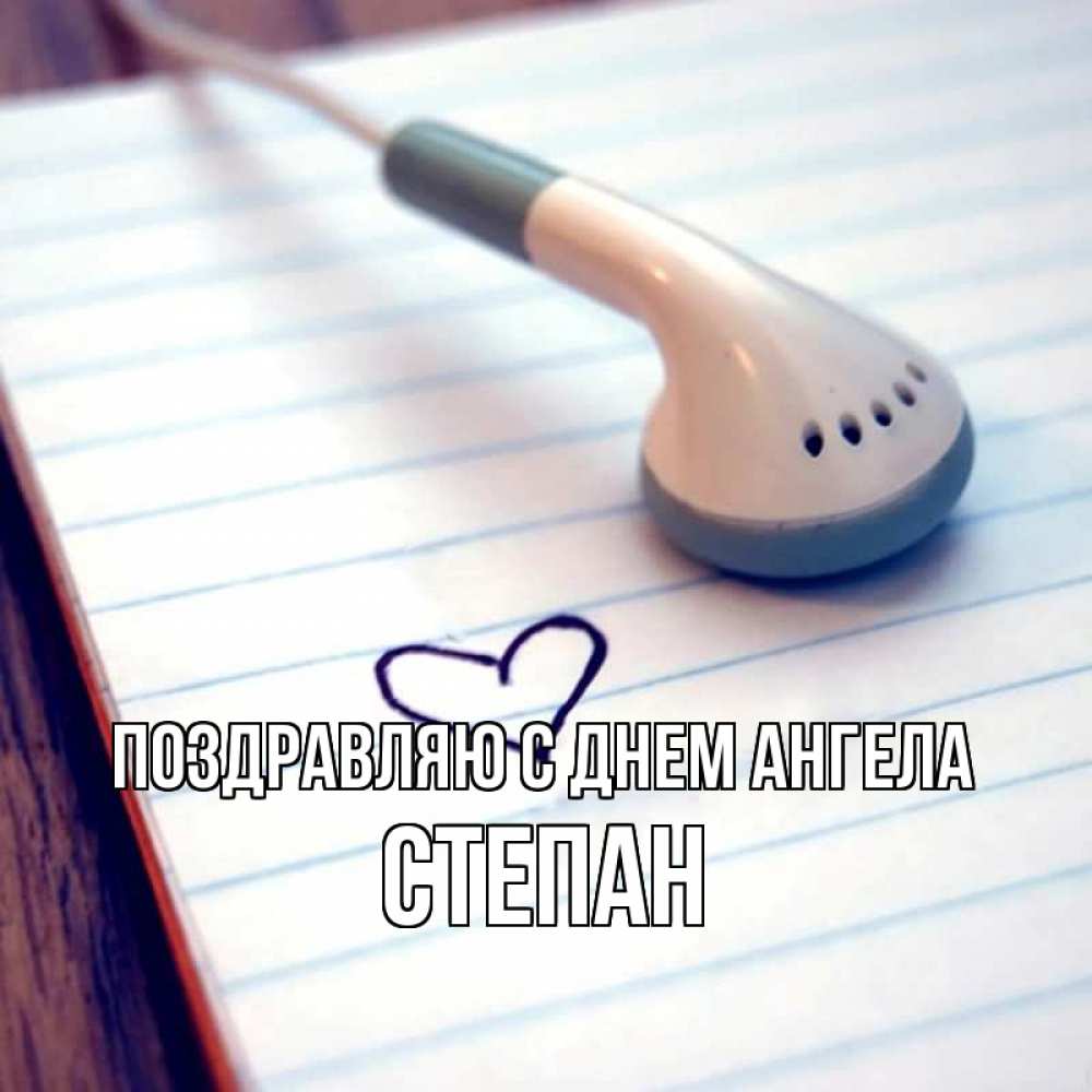 Открытка Поздравляю с днем Ангела Степан. наушник тетрадь в линейку. школьная тема