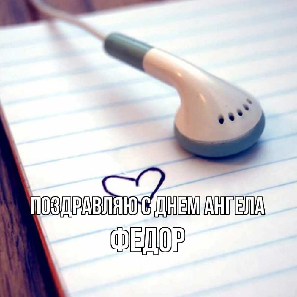 Открытка Поздравляю с днем Ангела Федор. наушник тетрадь в линейку. школьная тема