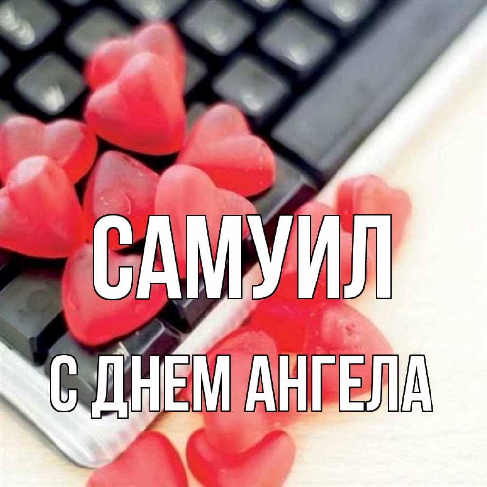 Открытка Самуил С днем ангела. мармеладки на клавиатуре. конфеты в виде сердец
