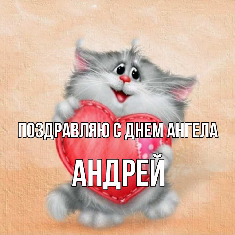 Открытка Поздравляю с днем Ангела Андрей. для тебя пушистое чудо. сердце с заплаткой