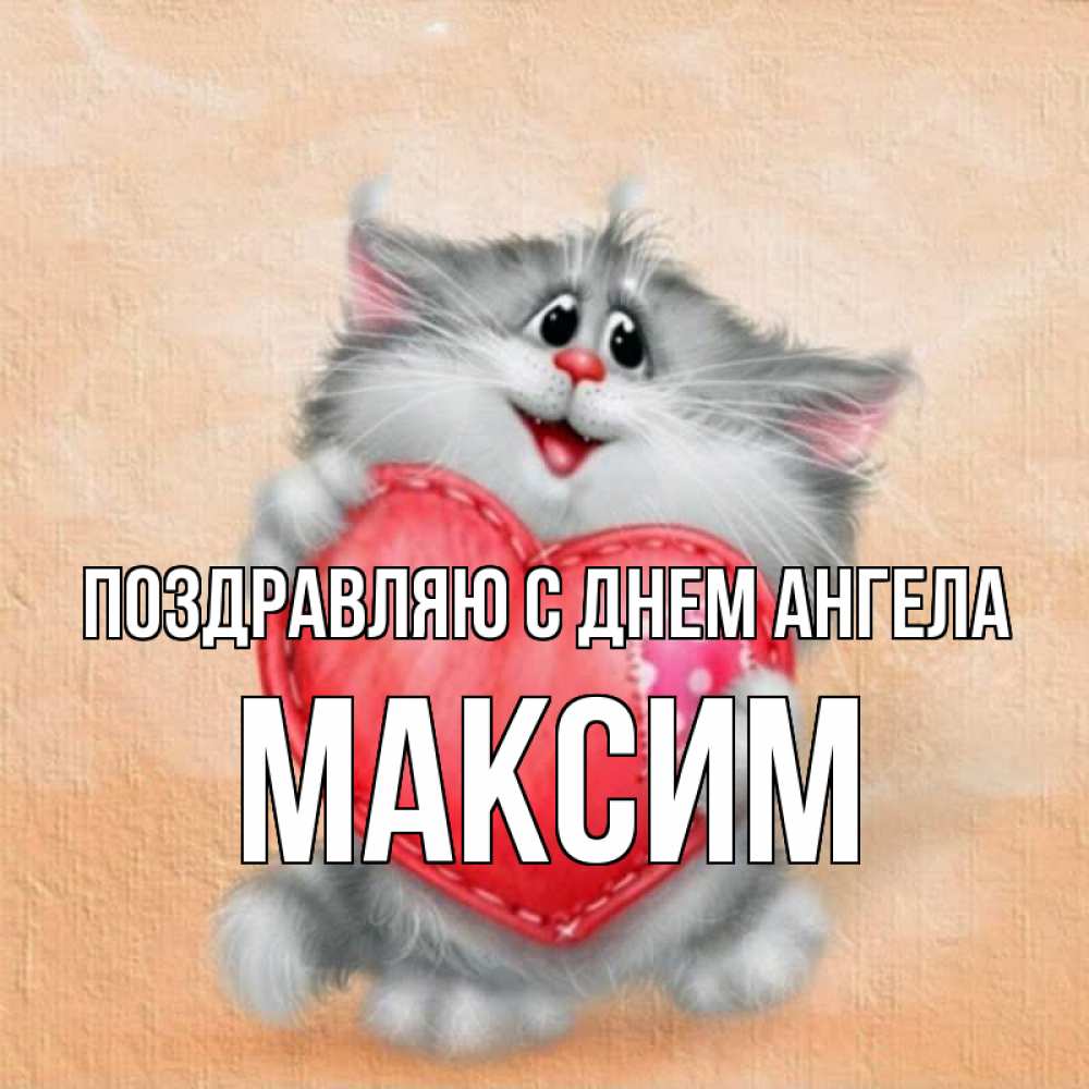 Открытка Поздравляю с днем Ангела Максим. для тебя пушистое чудо. сердце с заплаткой