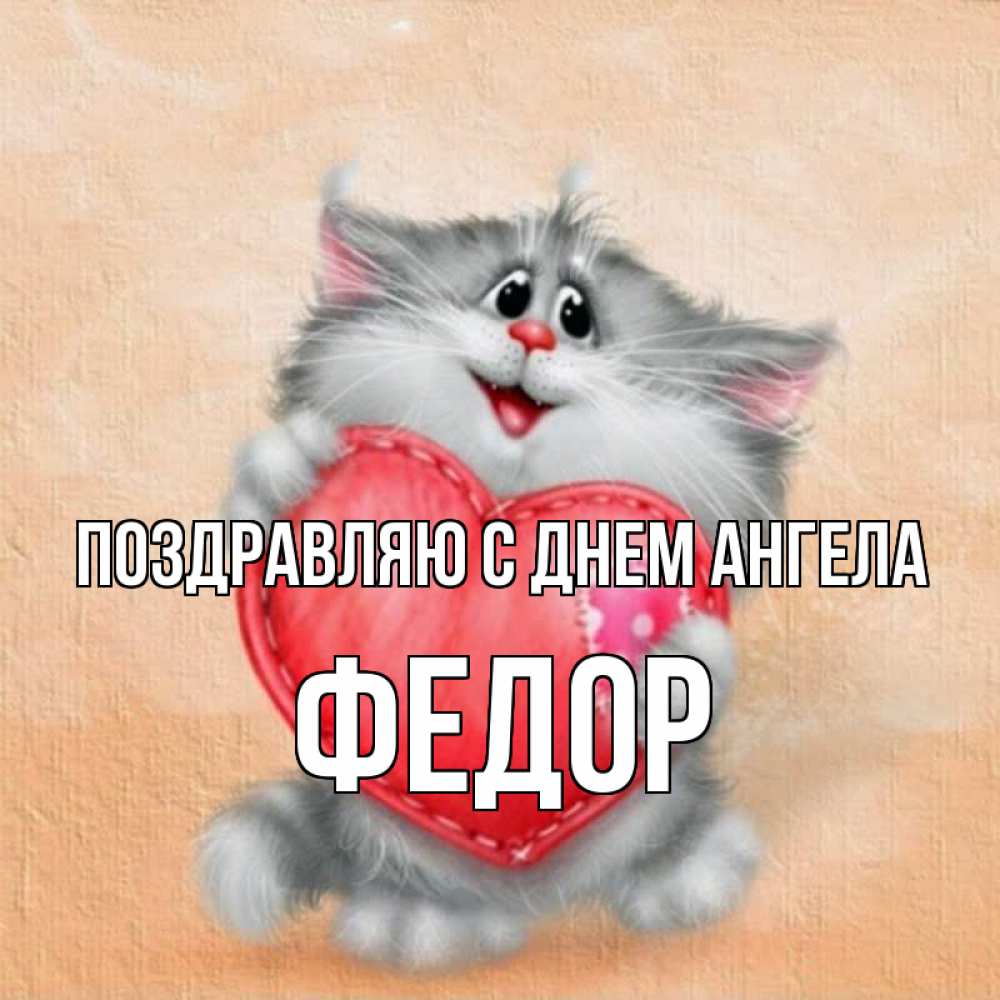 Открытка Поздравляю с днем Ангела Федор. для тебя пушистое чудо. сердце с заплаткой