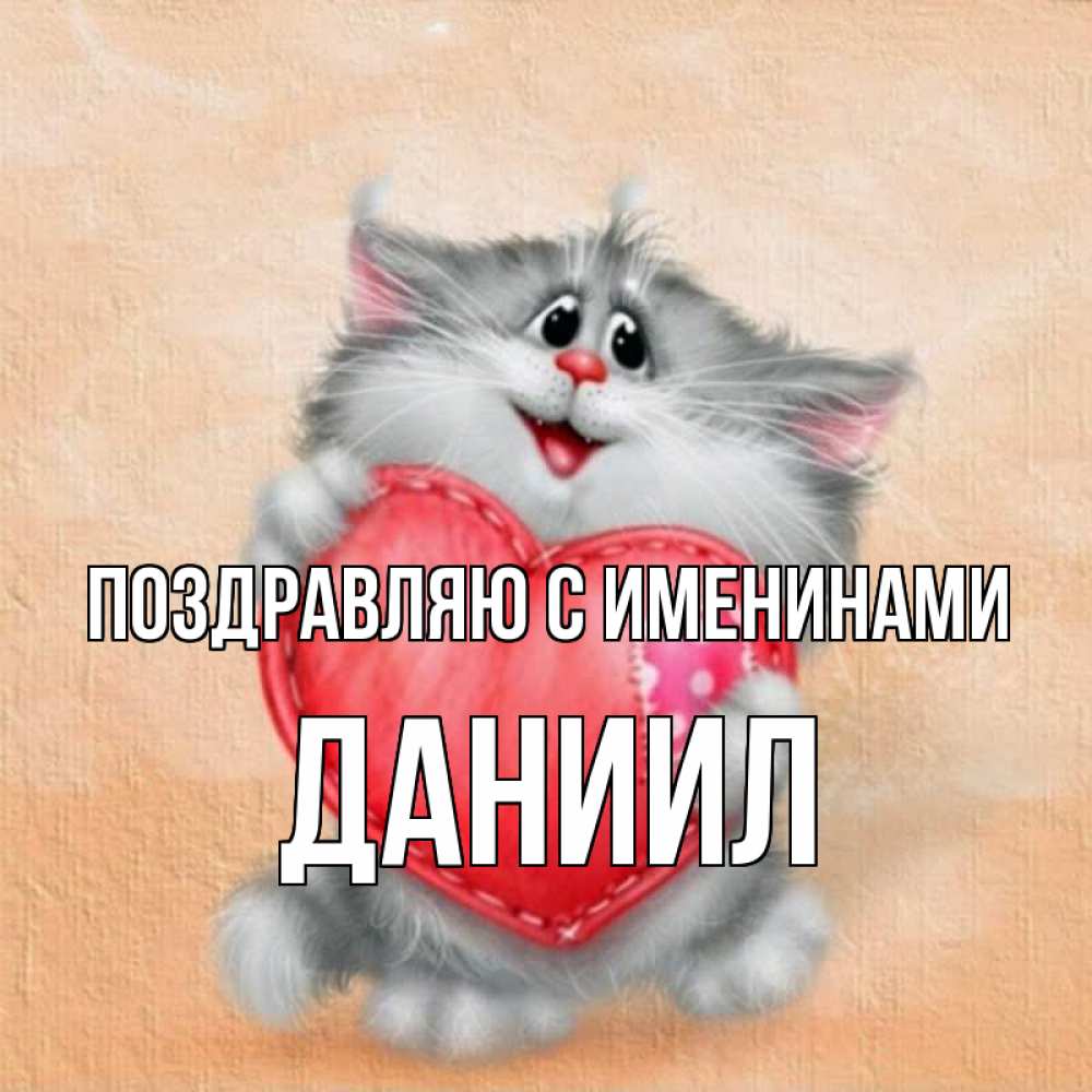 Открытка Поздравляю с именинами Даниил. для тебя пушистое чудо. сердце с заплаткой
