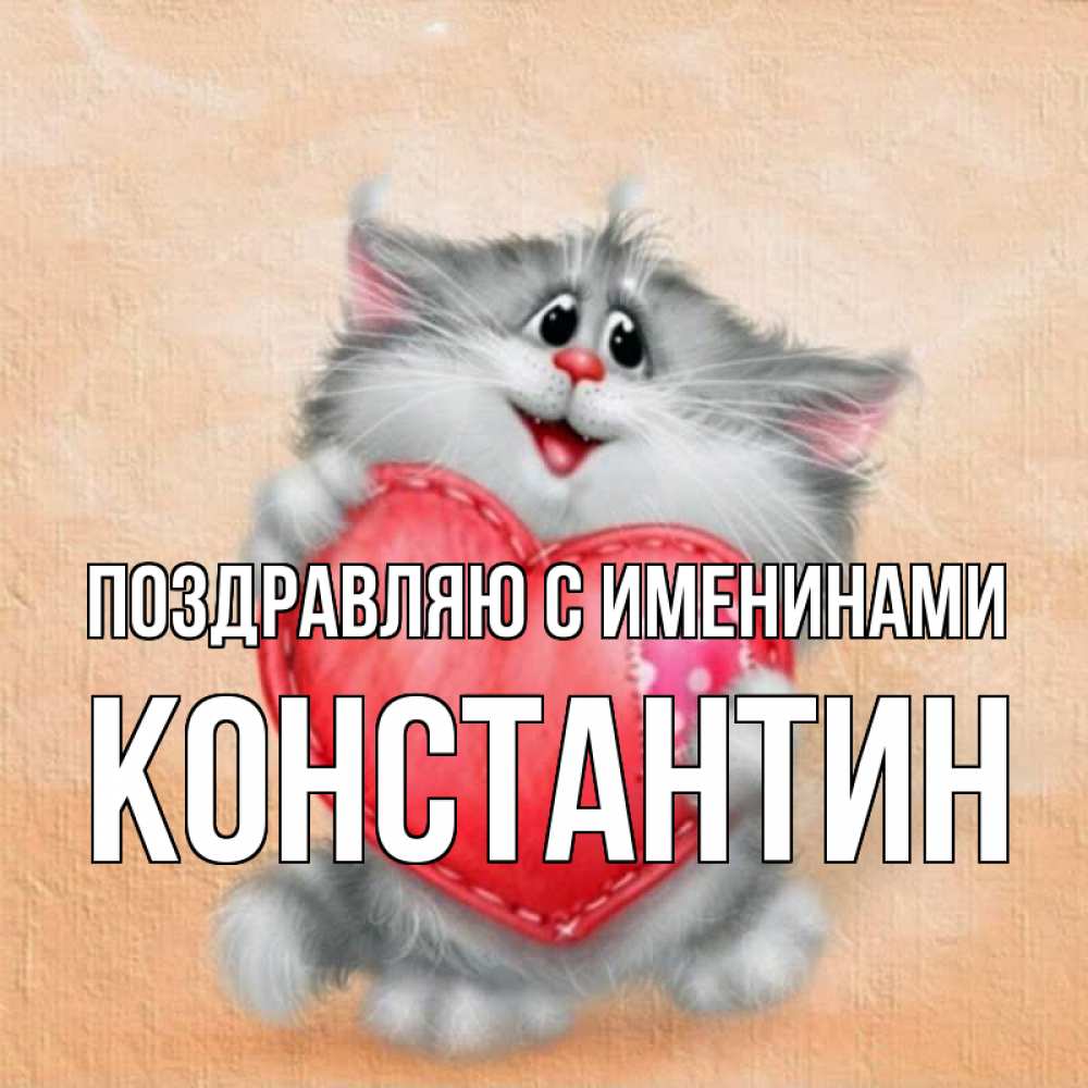 Открытка Поздравляю с именинами Константин. для тебя пушистое чудо. сердце с заплаткой
