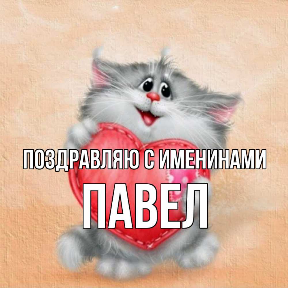 Открытка Поздравляю с именинами Павел. для тебя пушистое чудо. сердце с заплаткой