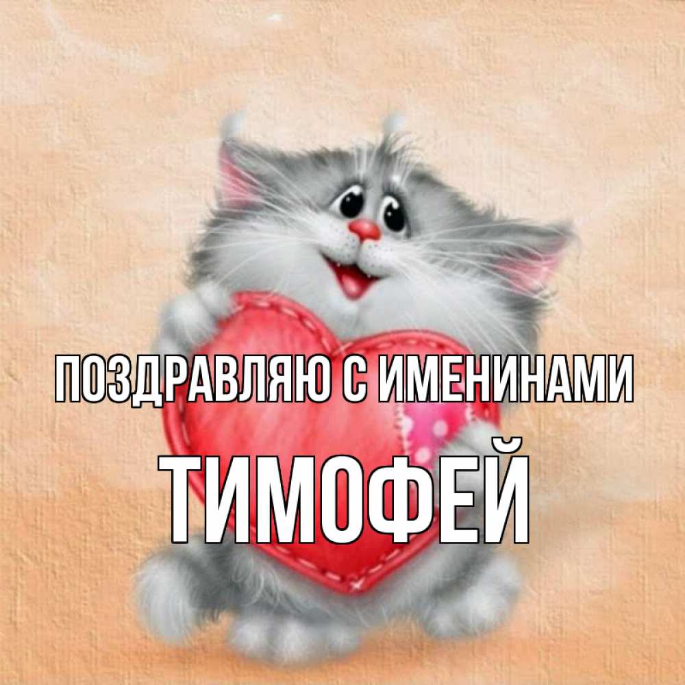 Открытка Поздравляю с именинами Тимофей. для тебя пушистое чудо. сердце с заплаткой