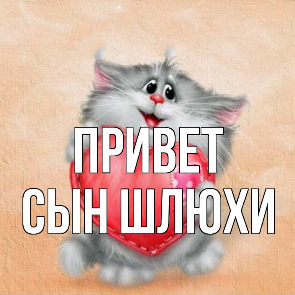 Открытка Привет Сын шлюхи. для тебя пушистое чудо. сердце с заплаткой
