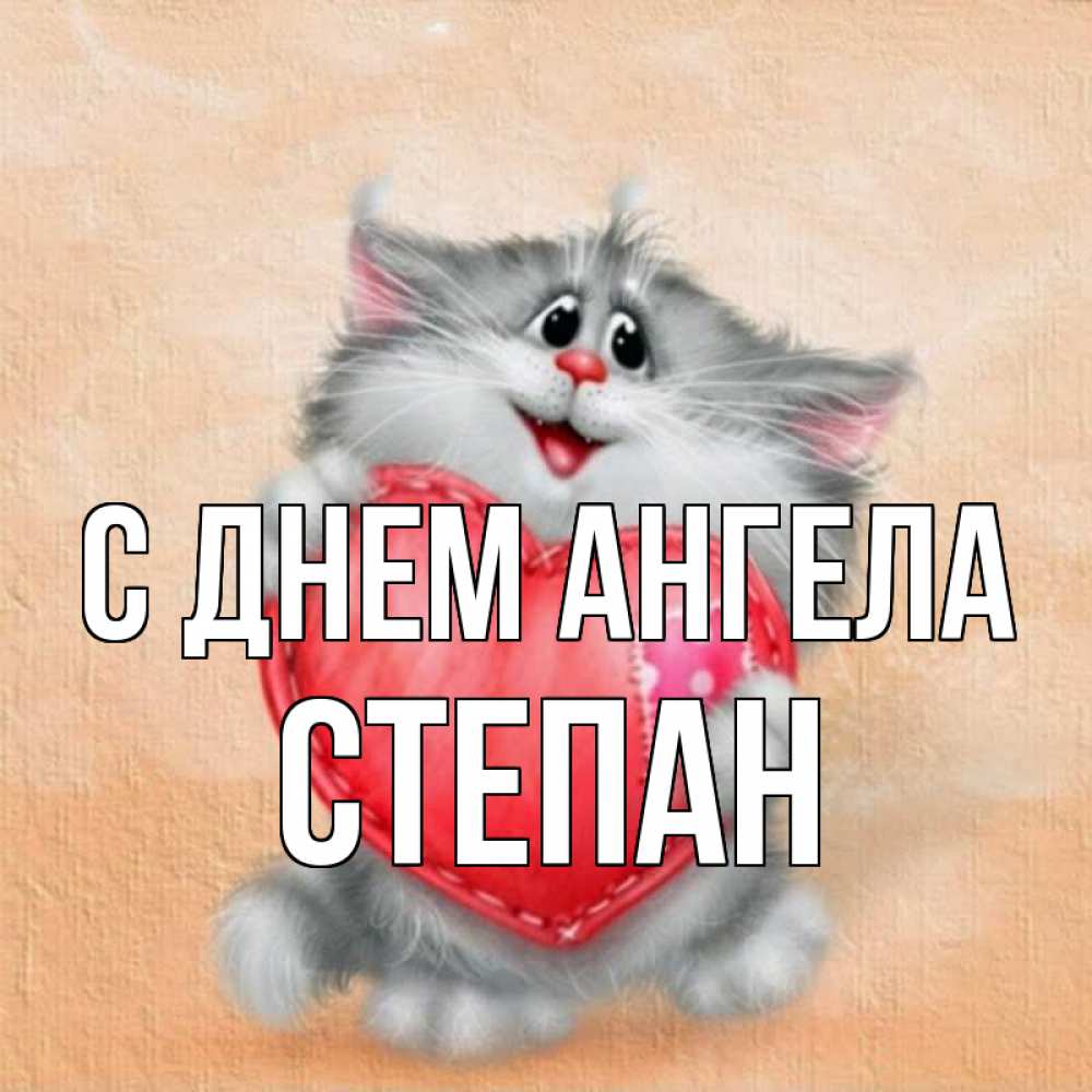 Открытка С днем Ангела Степан. для тебя пушистое чудо. сердце с заплаткой
