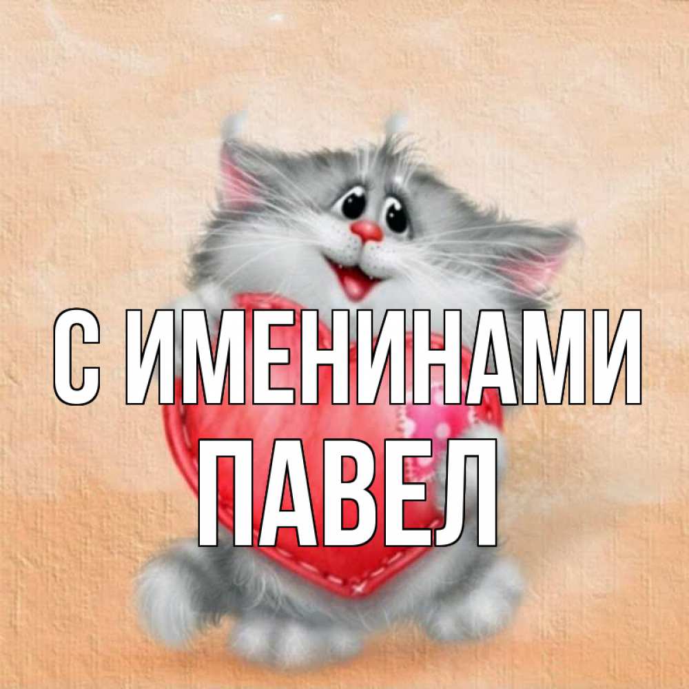 Открытка С именинами Павел. для тебя пушистое чудо. сердце с заплаткой
