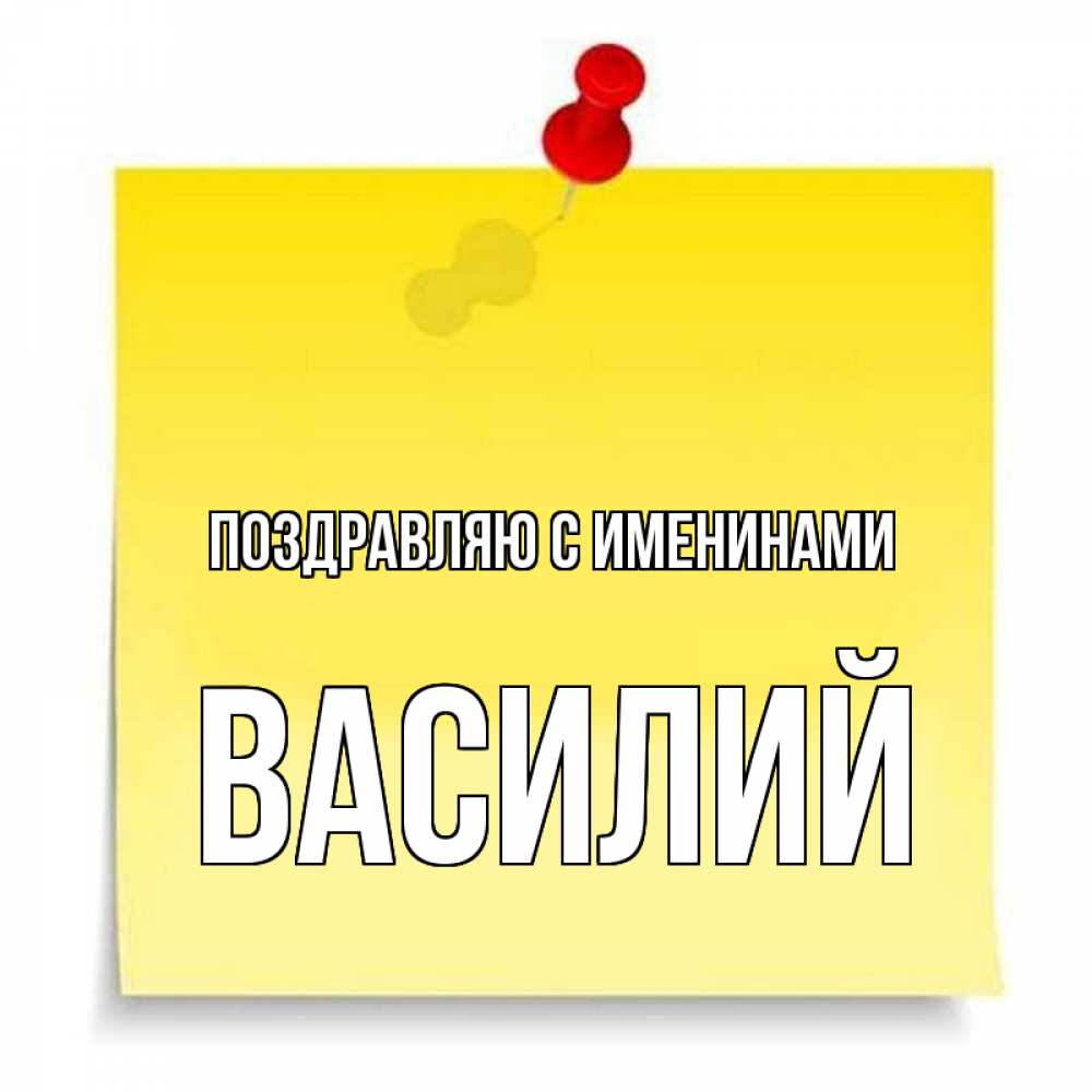 Открытка Поздравляю с именинами Василий. записочка для тебя. ноте