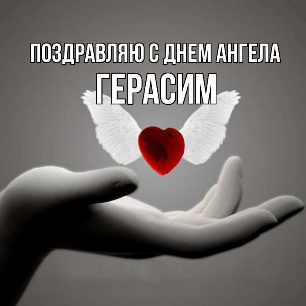 Открытка Поздравляю с днем Ангела Герасим. ангел. сердце