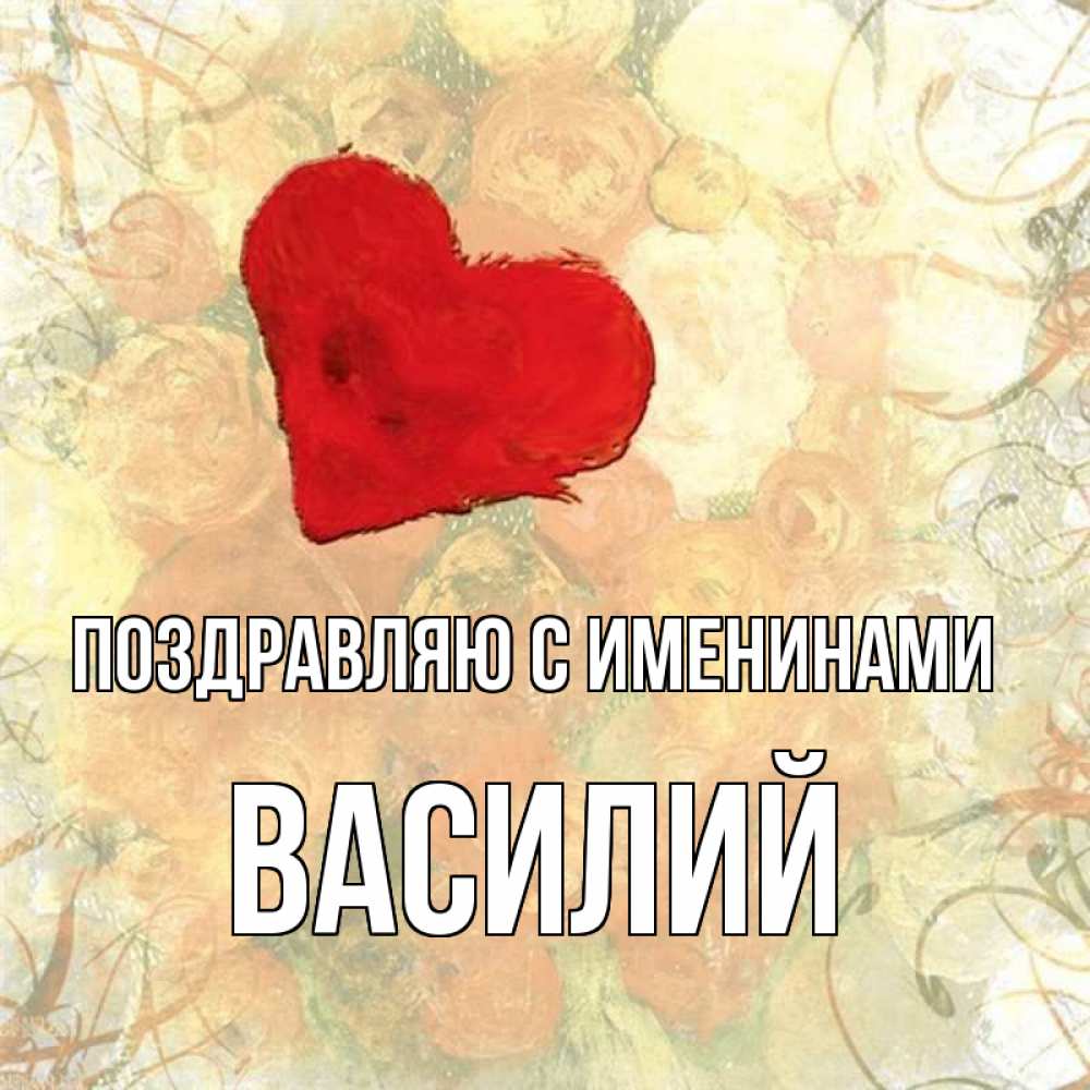 Открытка Поздравляю с именинами Василий. абстракция сердечко. красный