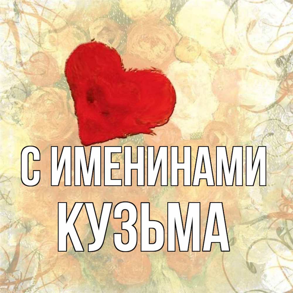 Открытка С именинами Кузьма. абстракция сердечко. красный