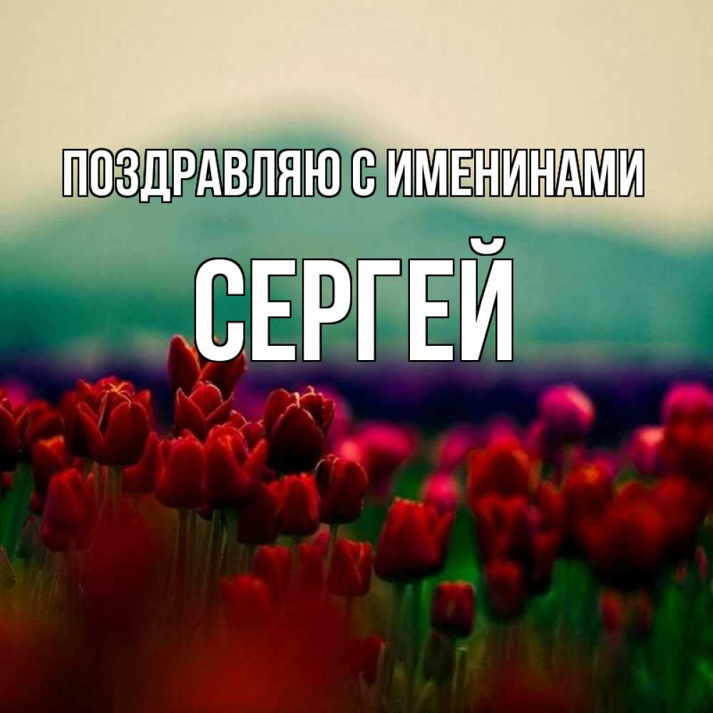 Открытка Поздравляю с именинами Сергей. цветы 4. тюльпаны 4