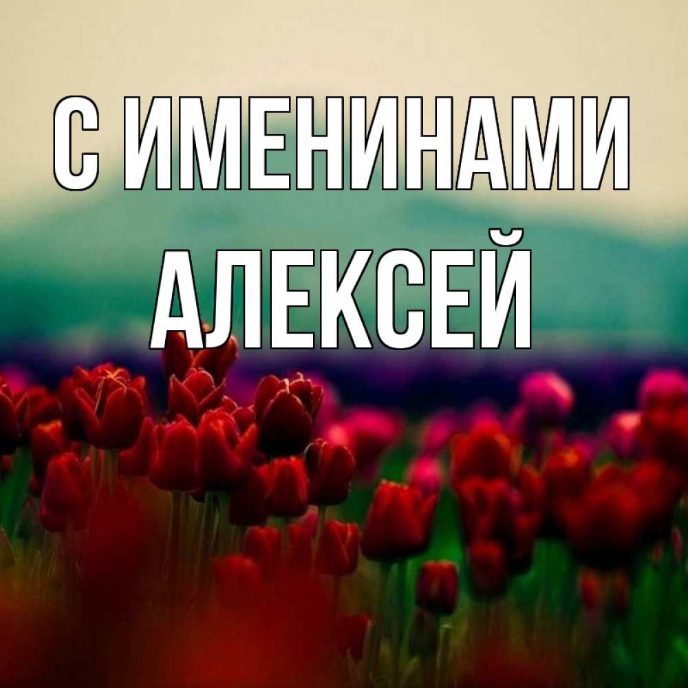 Открытка С именинами Алексей. цветы 4. тюльпаны 4