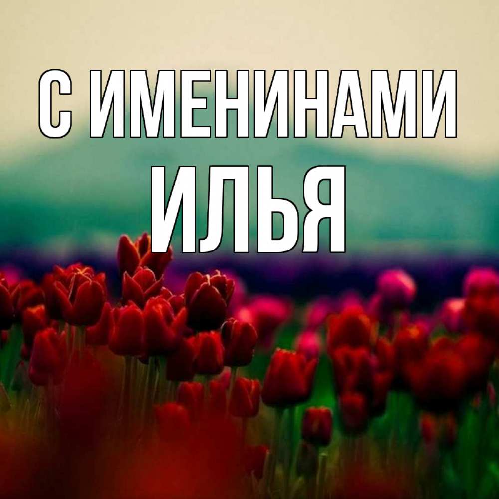 Открытка С именинами Илья. цветы 4. тюльпаны 4