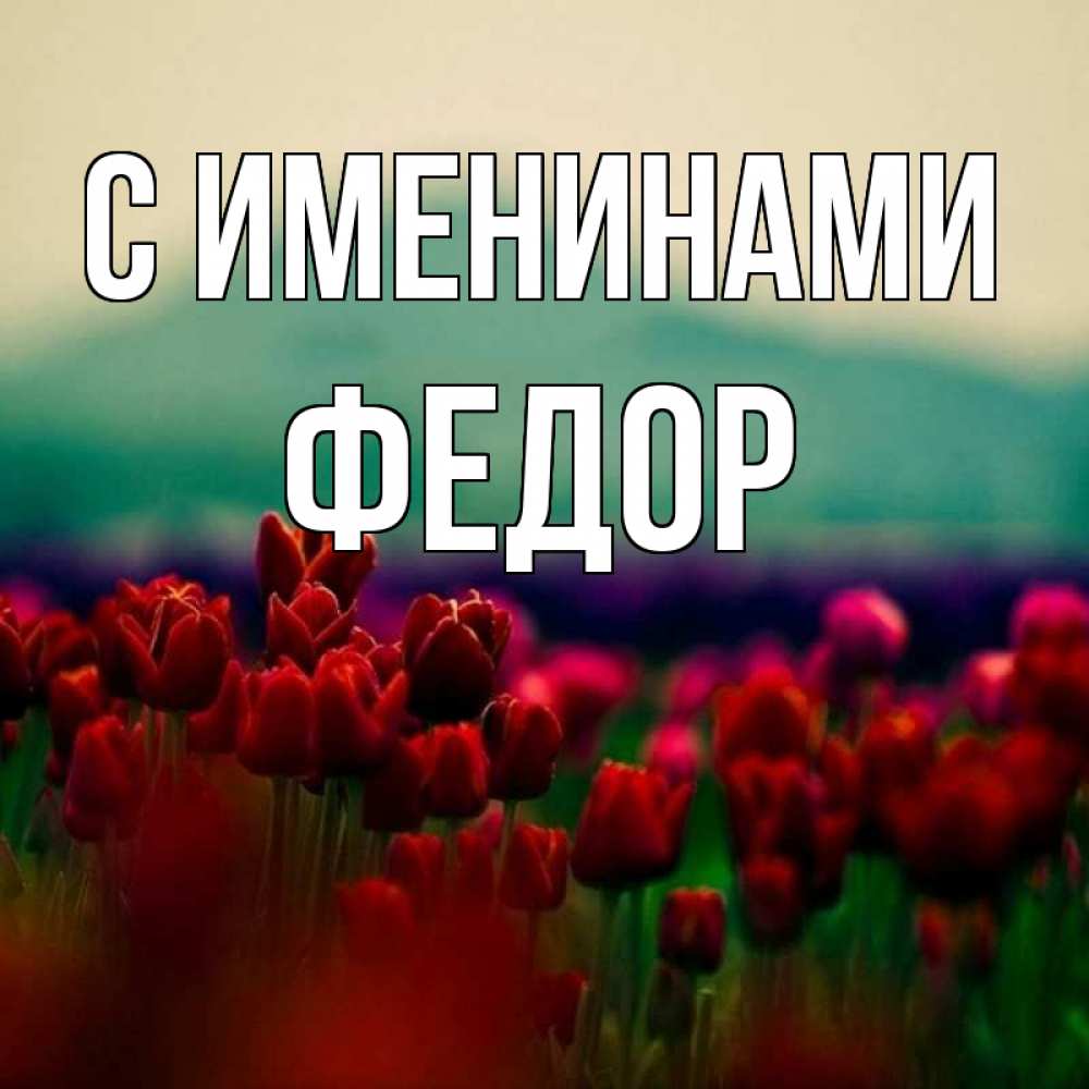Открытка С именинами Федор. цветы 4. тюльпаны 4