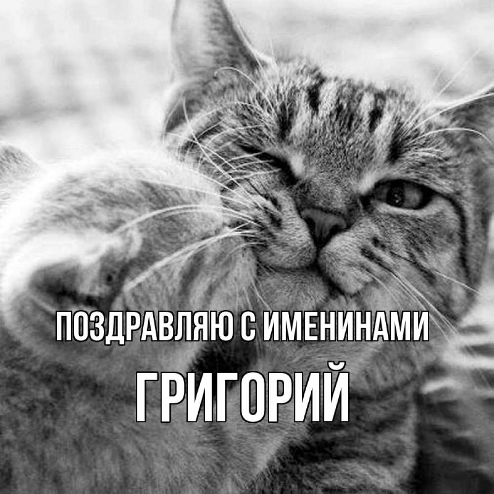 Открытка Поздравляю с именинами Григорий. кошачья нежность. коты