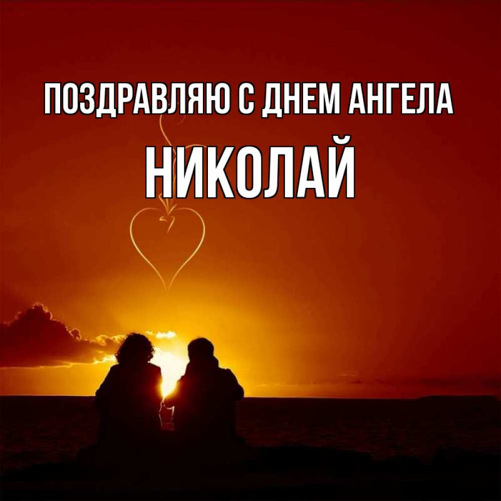 Открытка Поздравляю с днем Ангела Николай. небо с символом сердца. небо