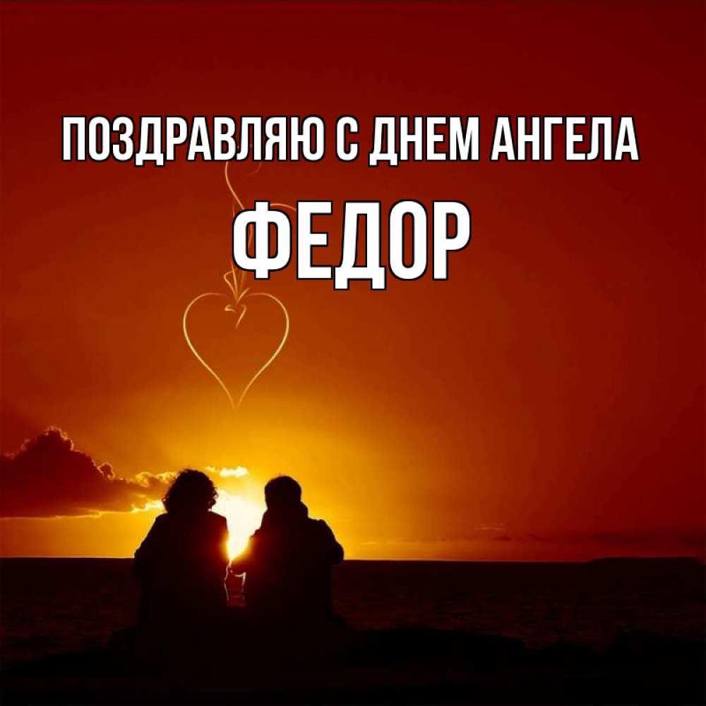 Открытка Поздравляю с днем Ангела Федор. небо с символом сердца. небо