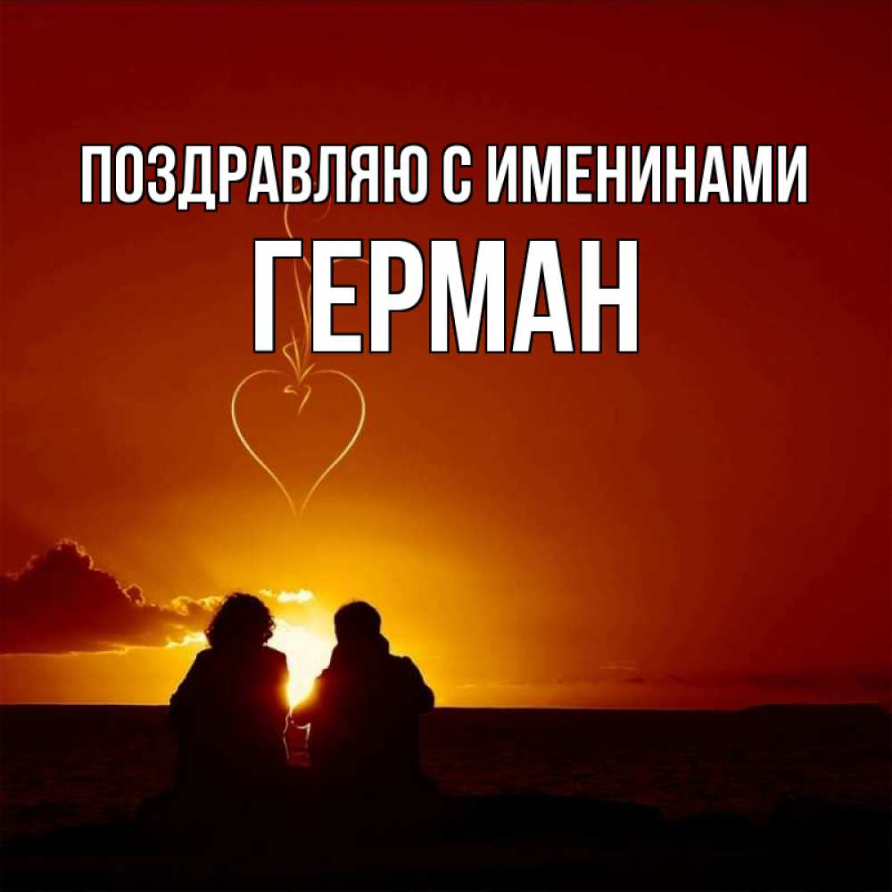 Открытка Поздравляю с именинами Герман. небо с символом сердца. небо