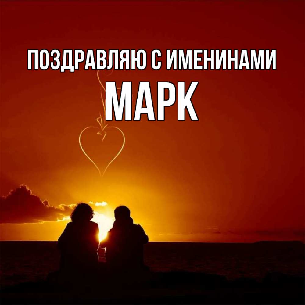 Открытка Поздравляю с именинами Марк. небо с символом сердца. небо