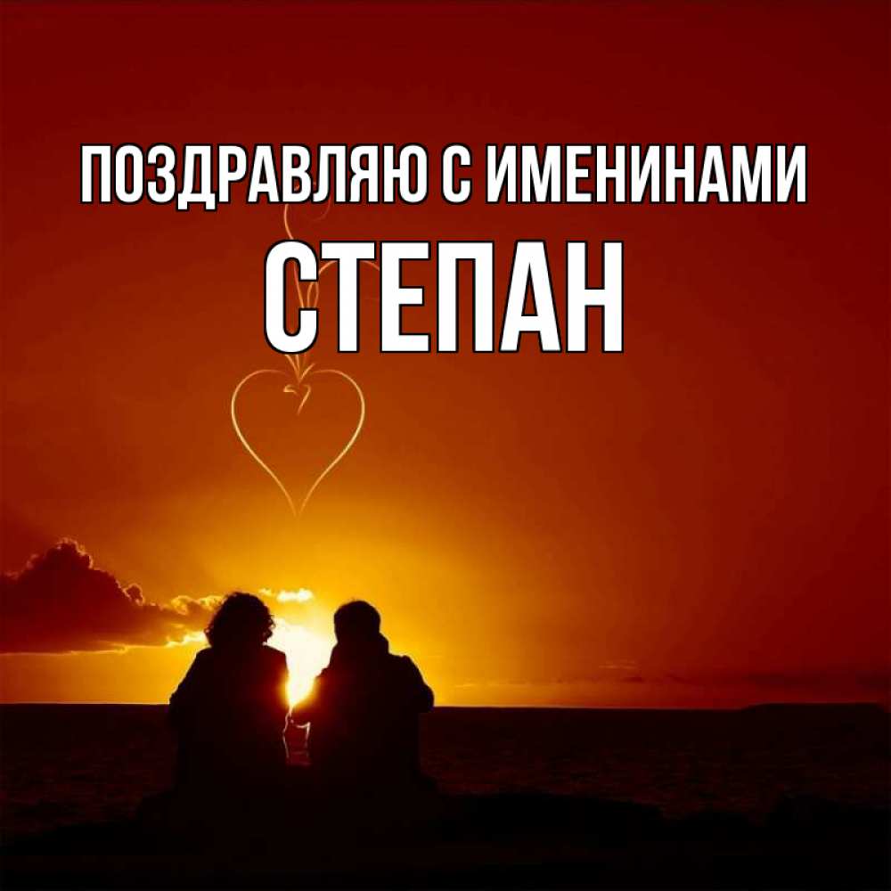 Открытка Поздравляю с именинами Степан. небо с символом сердца. небо