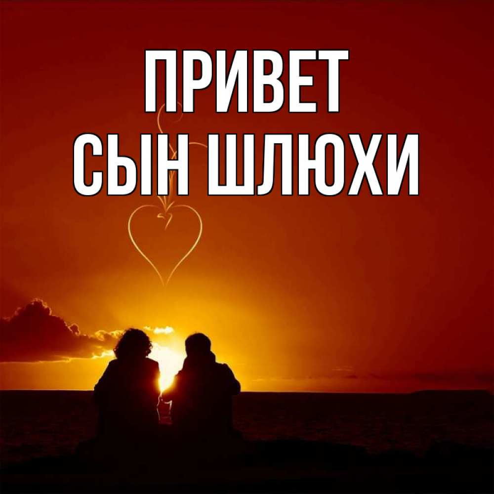 Открытка Привет Сын шлюхи. небо с символом сердца. небо