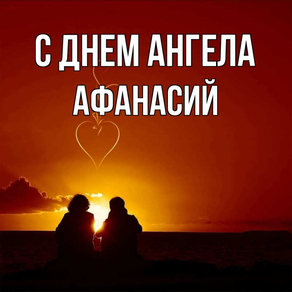 Открытка С днем Ангела Афанасий. небо с символом сердца. небо