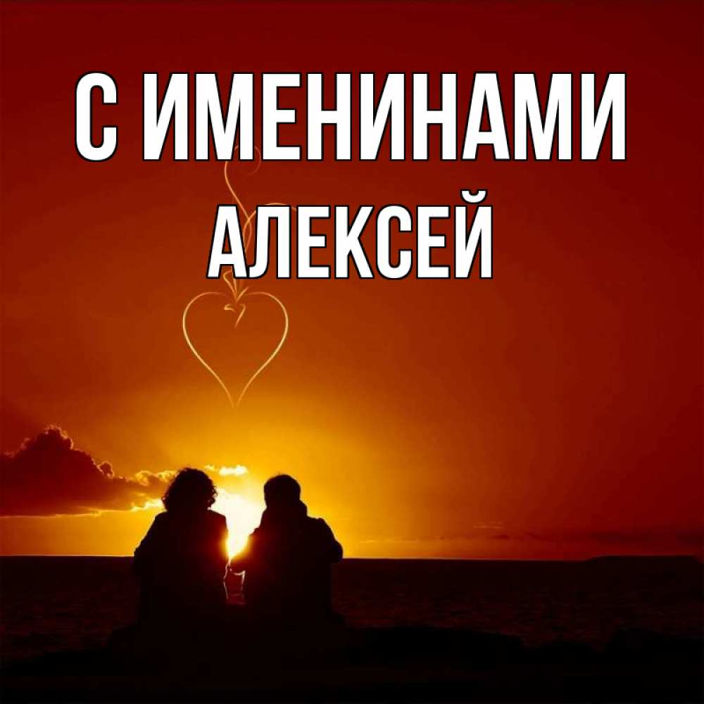 Открытка С именинами Алексей. небо с символом сердца. небо