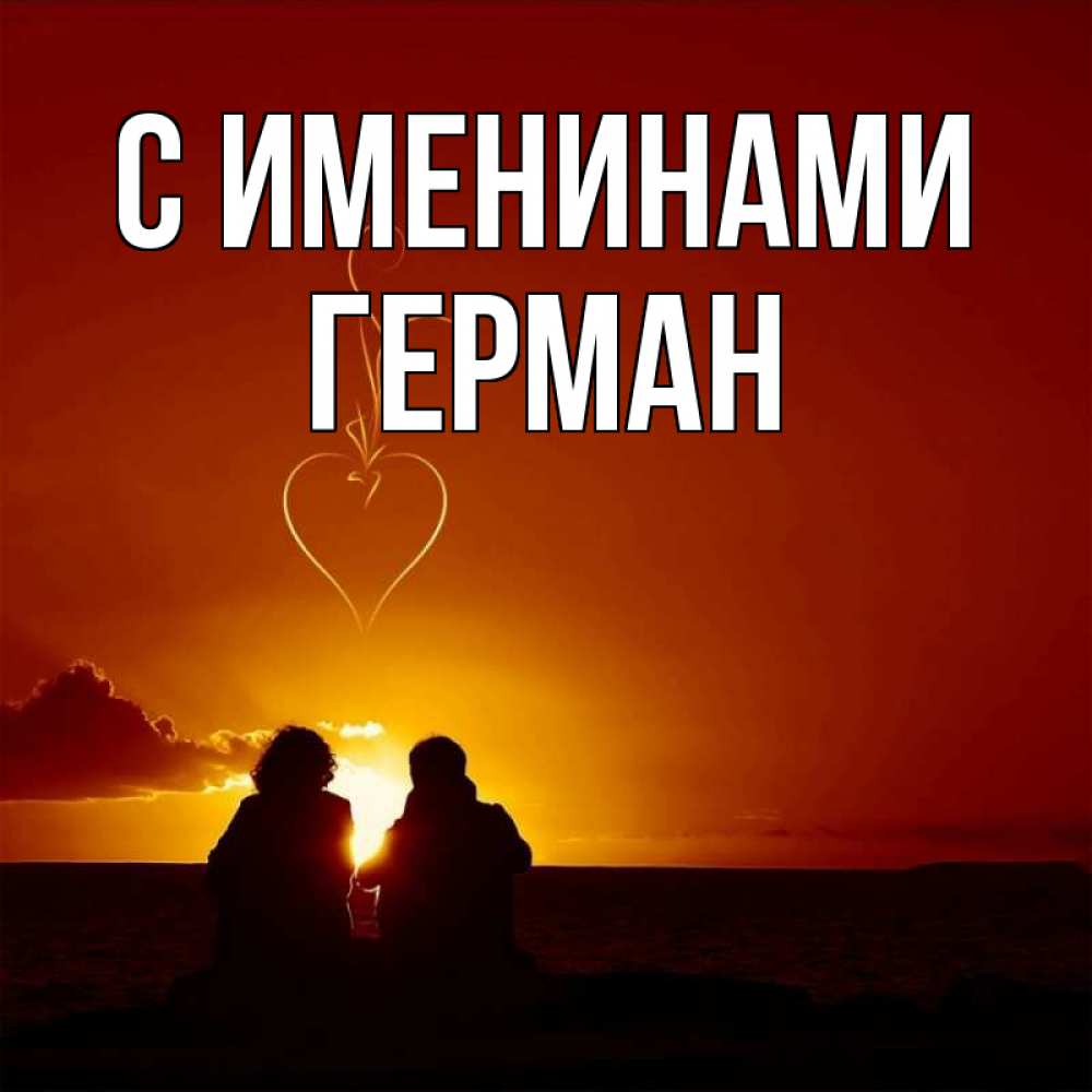 Открытка С именинами Герман. небо с символом сердца. небо