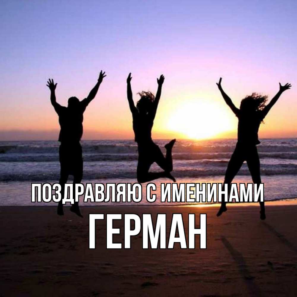 Открытка Поздравляю с именинами Герман. прыгаем на берегу. позитив